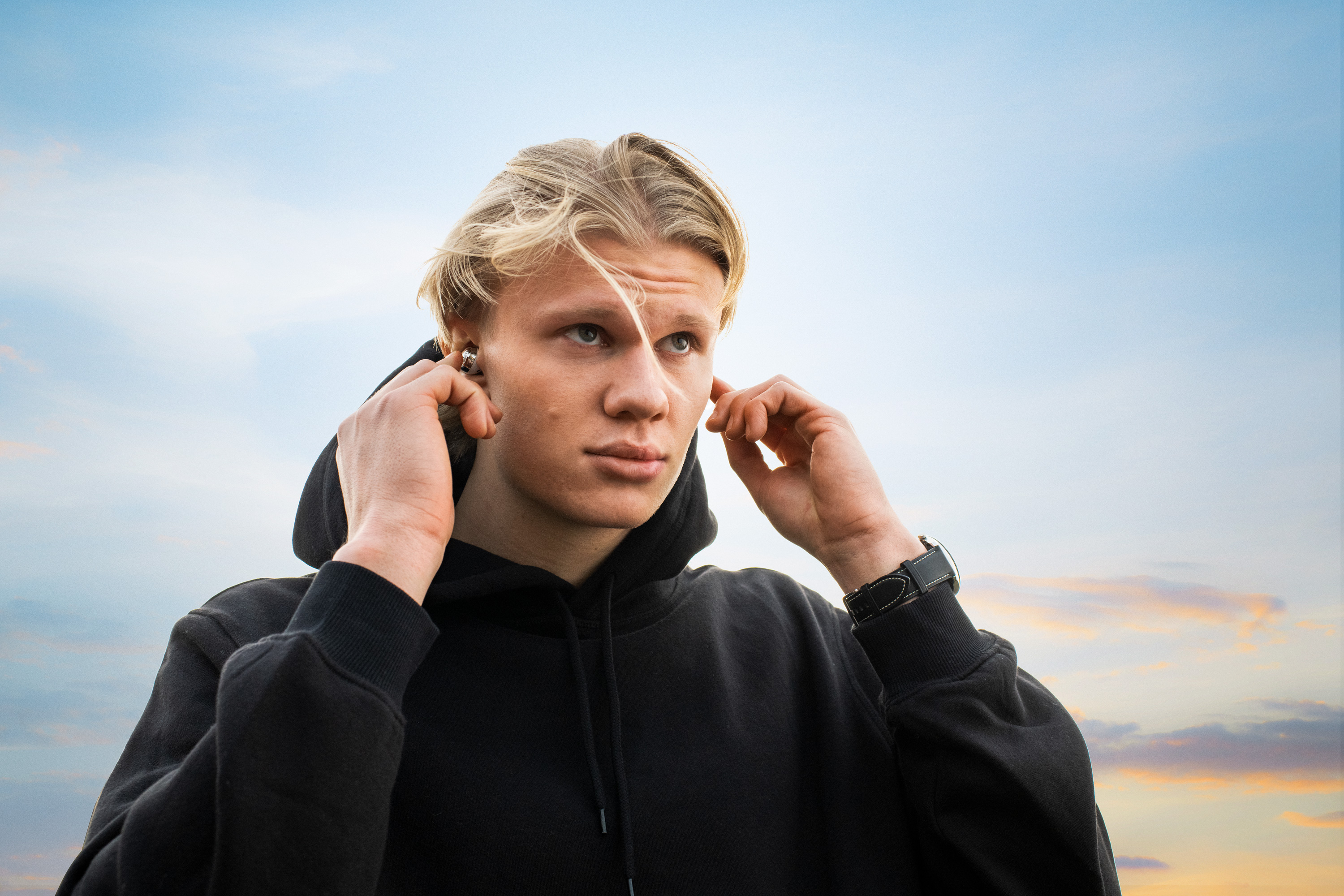 Soccer player Erling Haaland taken for Samsung to advertise their partnership and products such as the Samsung Smartchwatch & Galaxy Buds.